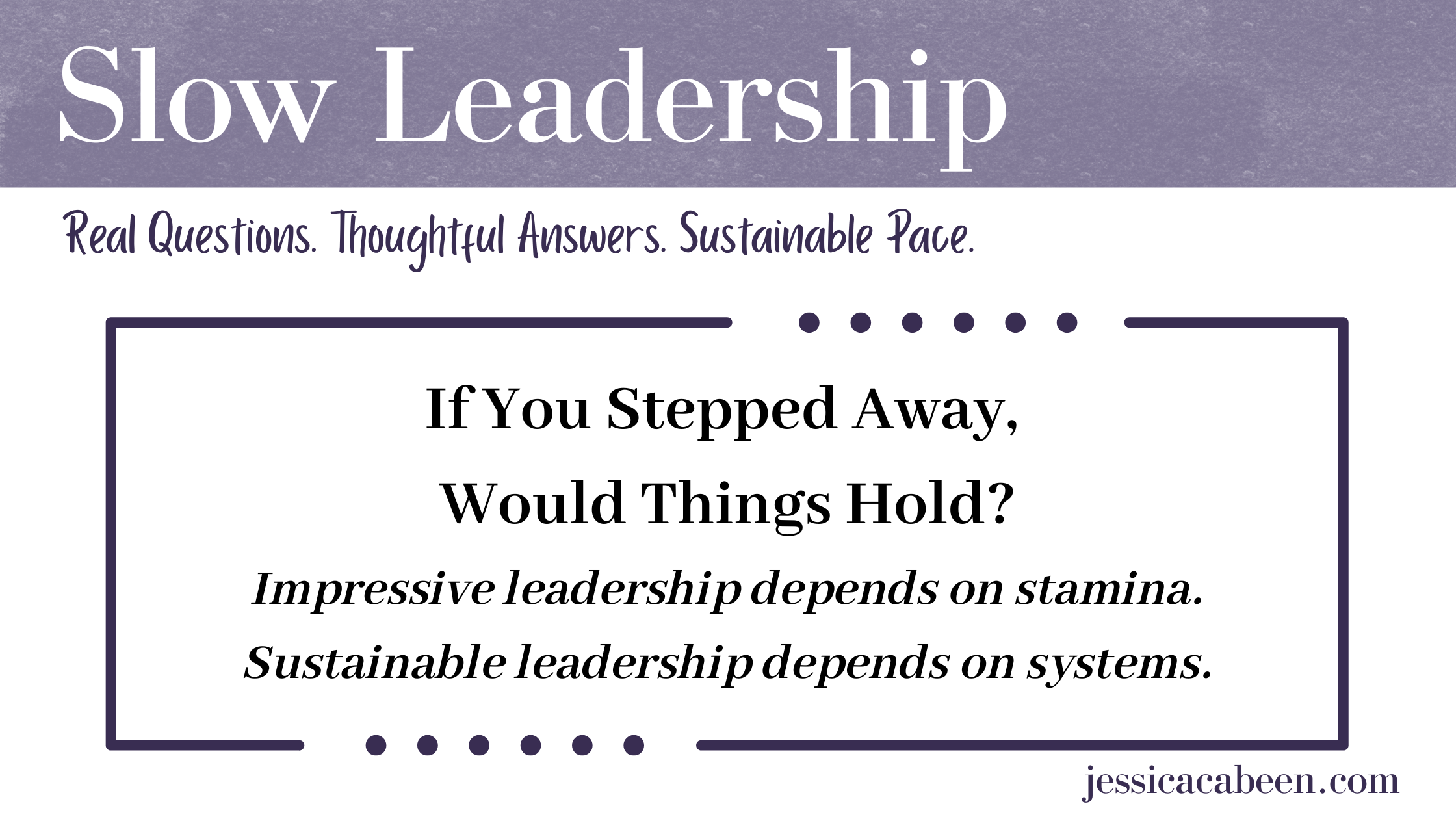Slow leadership builds endurance.